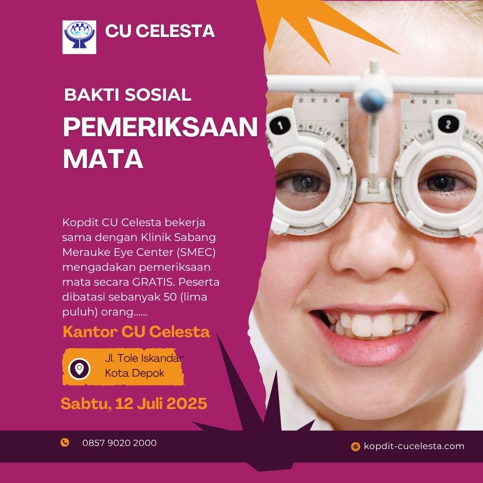 Kopdit CU Celesta bekerja sama dengan Klinik Sabang Merauke Eye Center (SMEC) mengadakan pemeriksaan mata secara GRATIS.